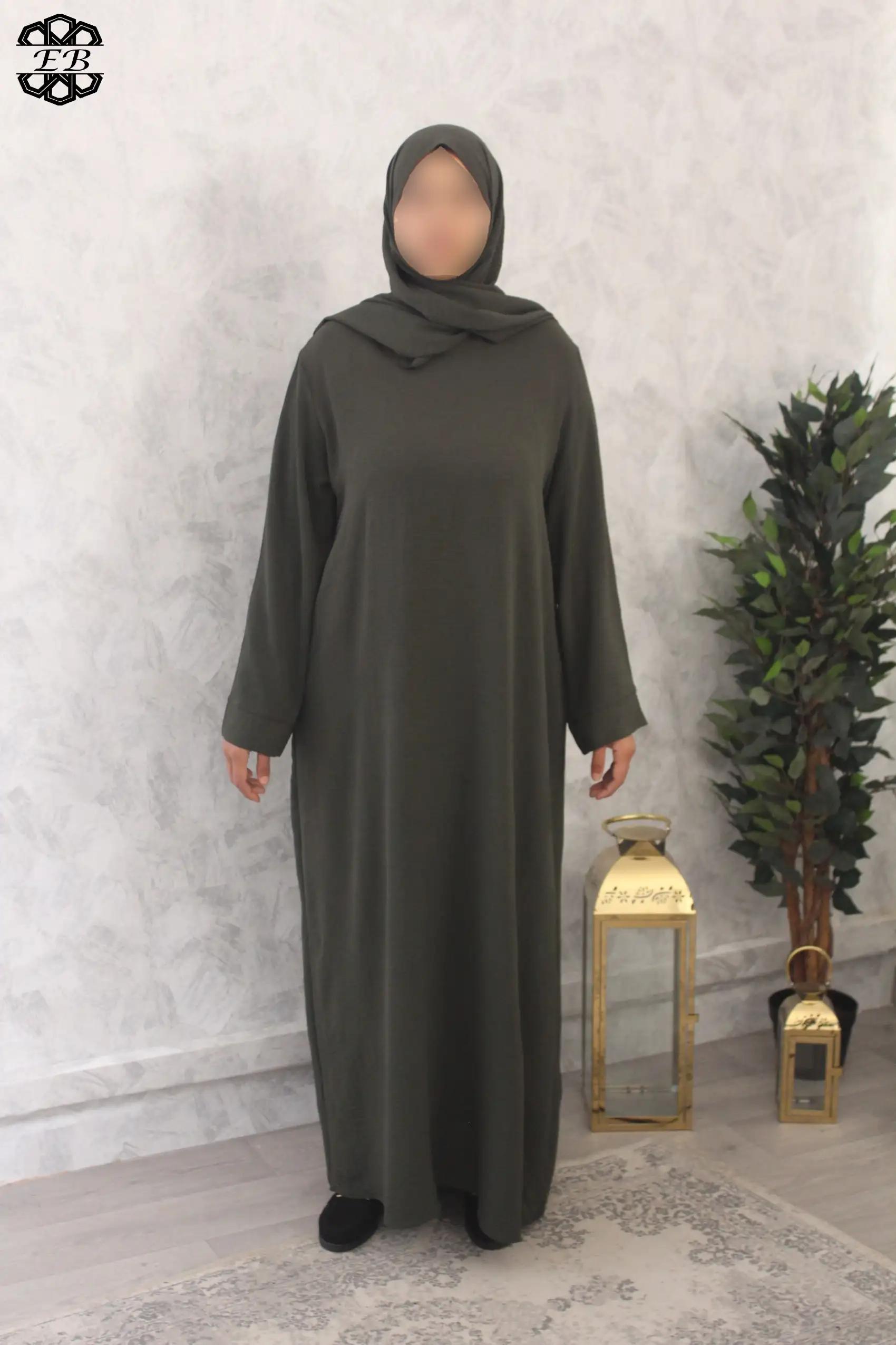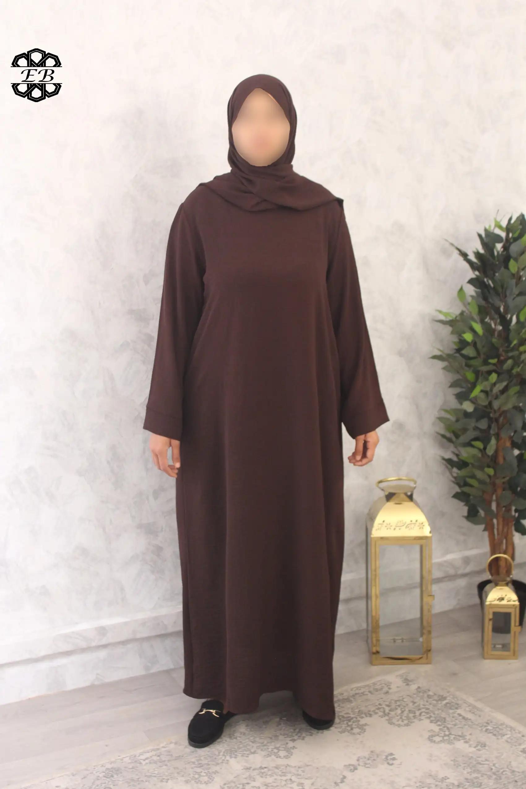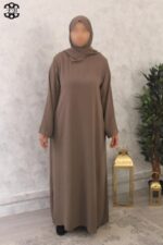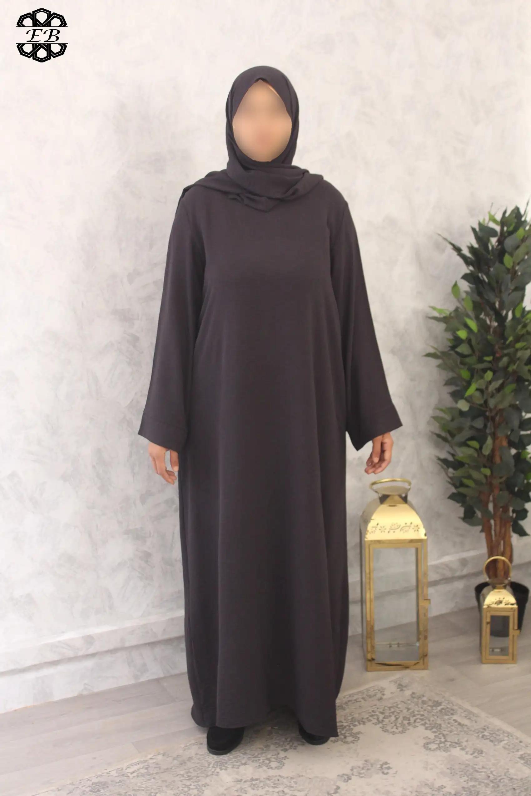 Abaya avec voile intégré droite pas cher jazz Baya pour femme active et pudique. Tissu jazz, mat et légèrement plissé, s’enfile rapidement grâce à son châle intégré. Idéal pour les sorties de tous les jours et la prière à la mosquée ou à la maison. Disponible de la t52/1m55 à t58/1m70.