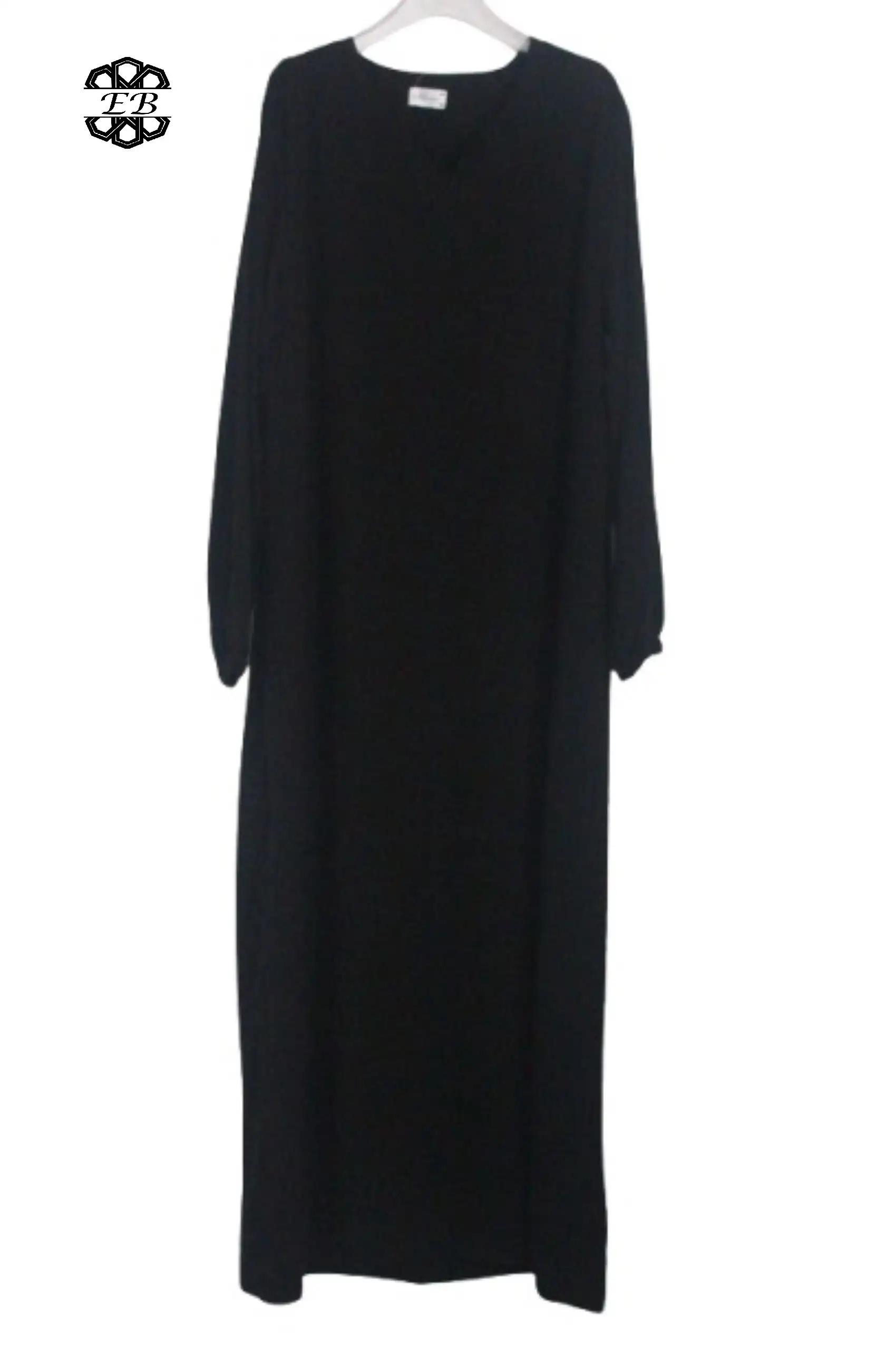 Abaya noir intense caviary droite El Bassira pour femme musulmane voilée. Disponible en taille t3/L (1m65-1m70/70 kg max) jusqu’à t6/3XL (1m80-1m85/100 kg max) . Tissu Caviary opaque, épais et mat. Idéal pour toutes saisons.