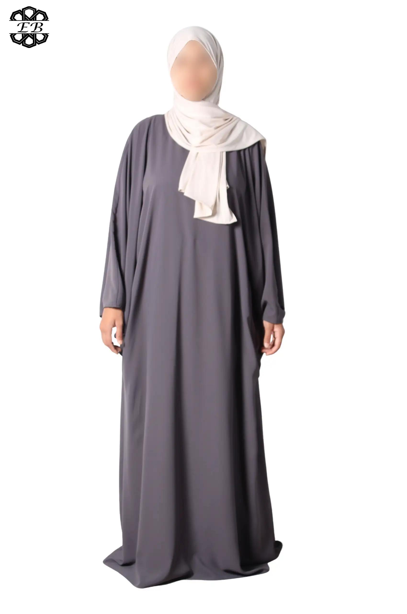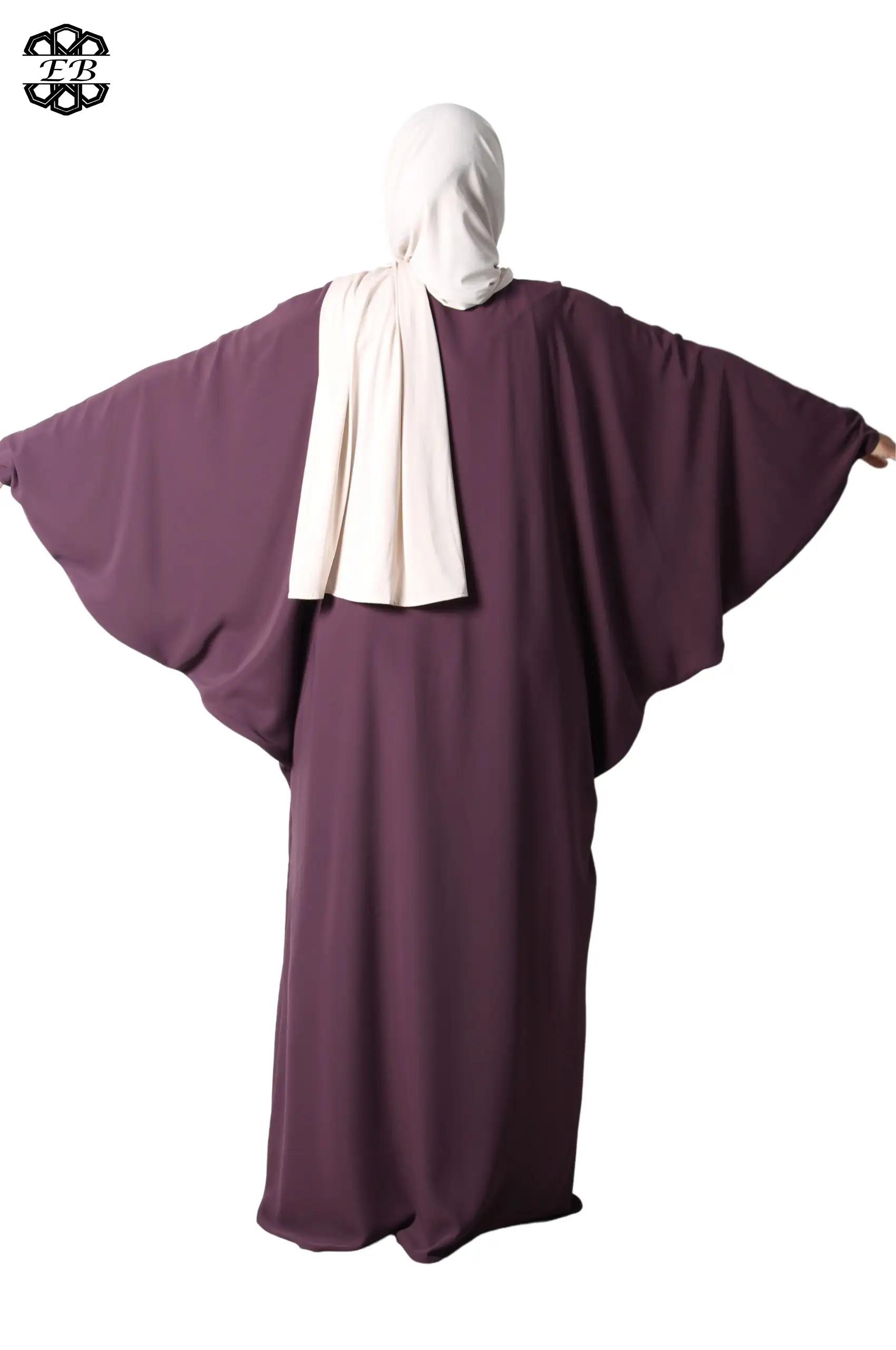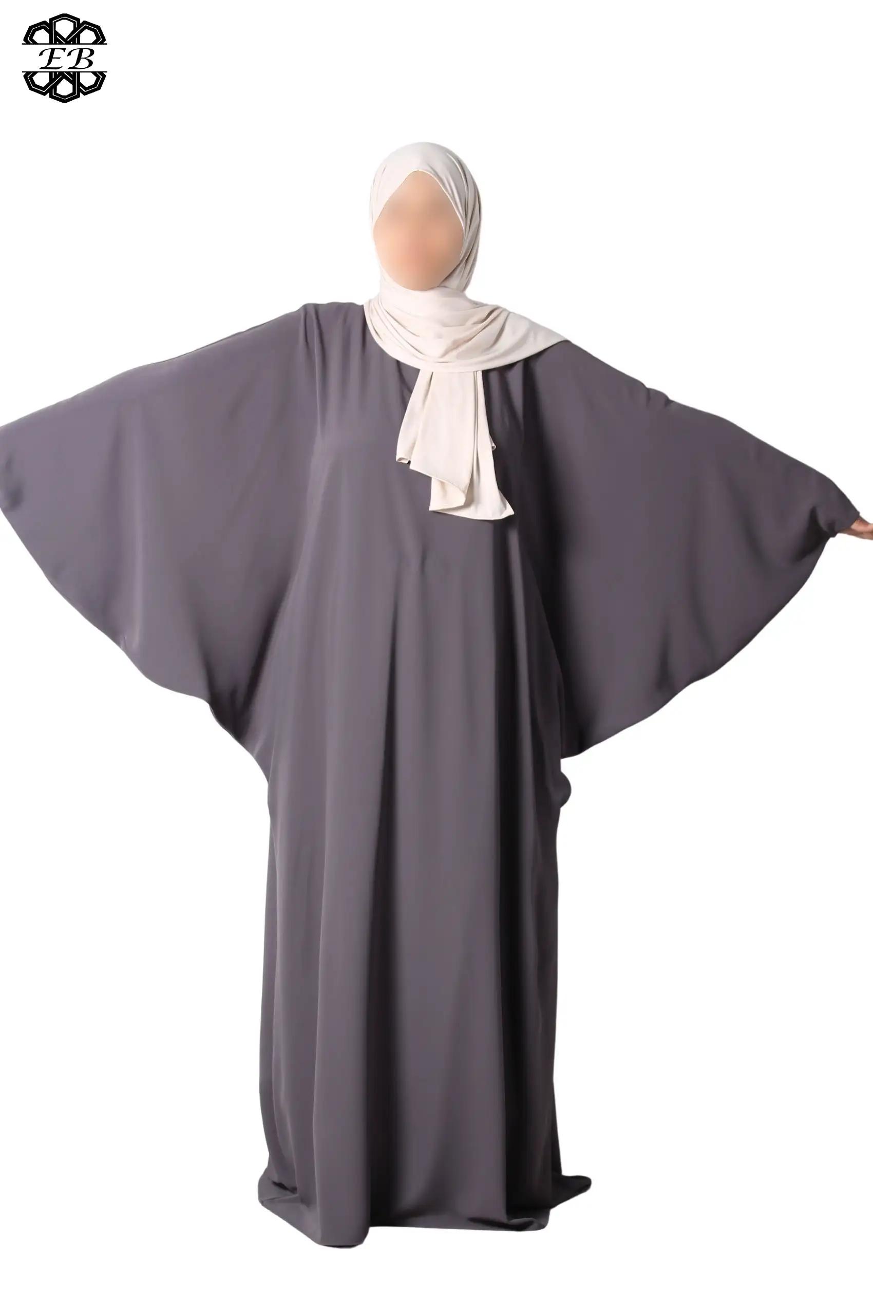 Abaya papillon soie de médine Duna El Bassira pour femme musulmane voilée. Disponible en taille T52/1m55 (1m55-1m60/90 kg max) jusqu’à T62/1m80 (1m80-1m85/140 kg max) . Tissu Soie de Médine, très doux et légèrement satiné idéal pour toutes saisons.