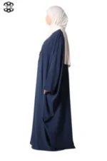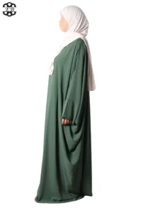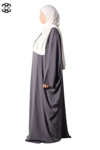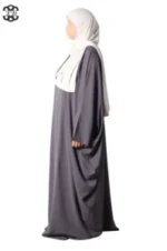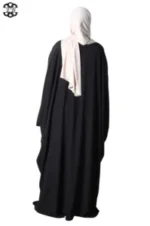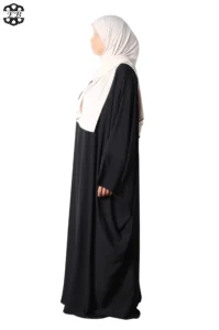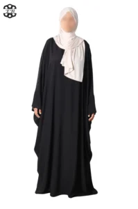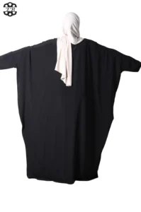 Abaya saoudienne Soie de Médine El Bassira Radya avec manches droites ouvertes pour femme musulmane voilée. Disponible en taille T52/1m55 (1m55-1m60/90 kg max) jusqu’à T62/1m80(1m80-1m85/140 kg max) . Tissu Soie de Médine SPH léger , doux et légèrement satiné. Idéal pour l’été et fortes chaleurs.