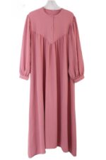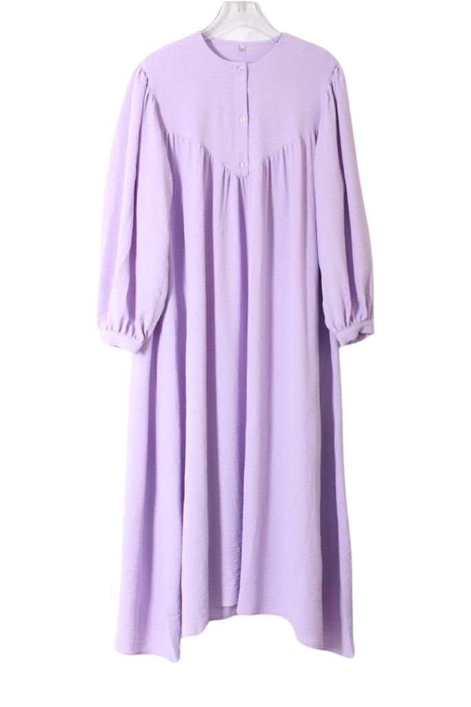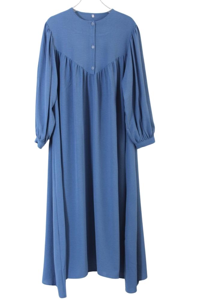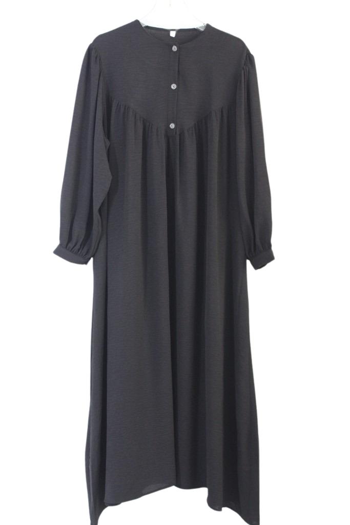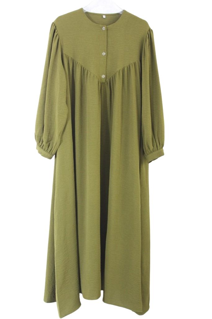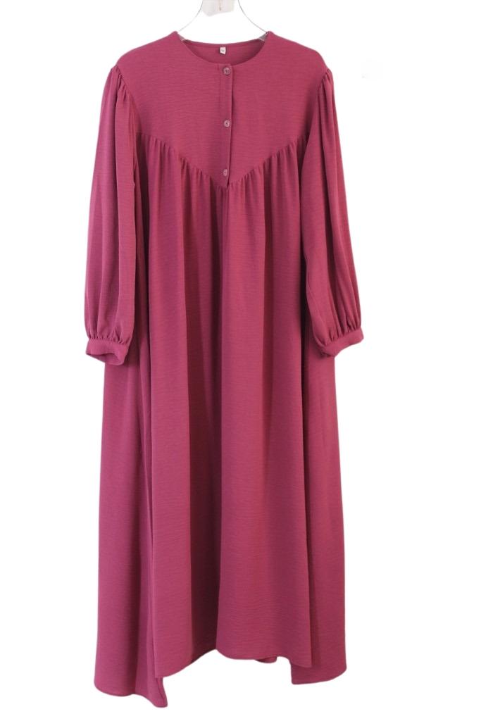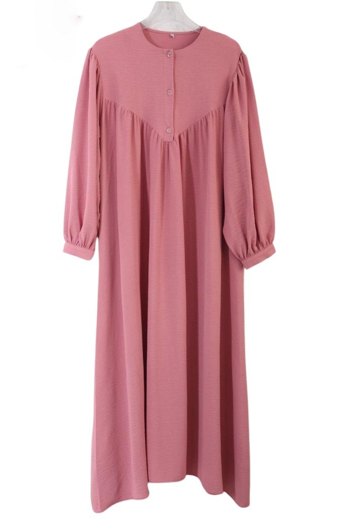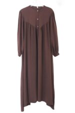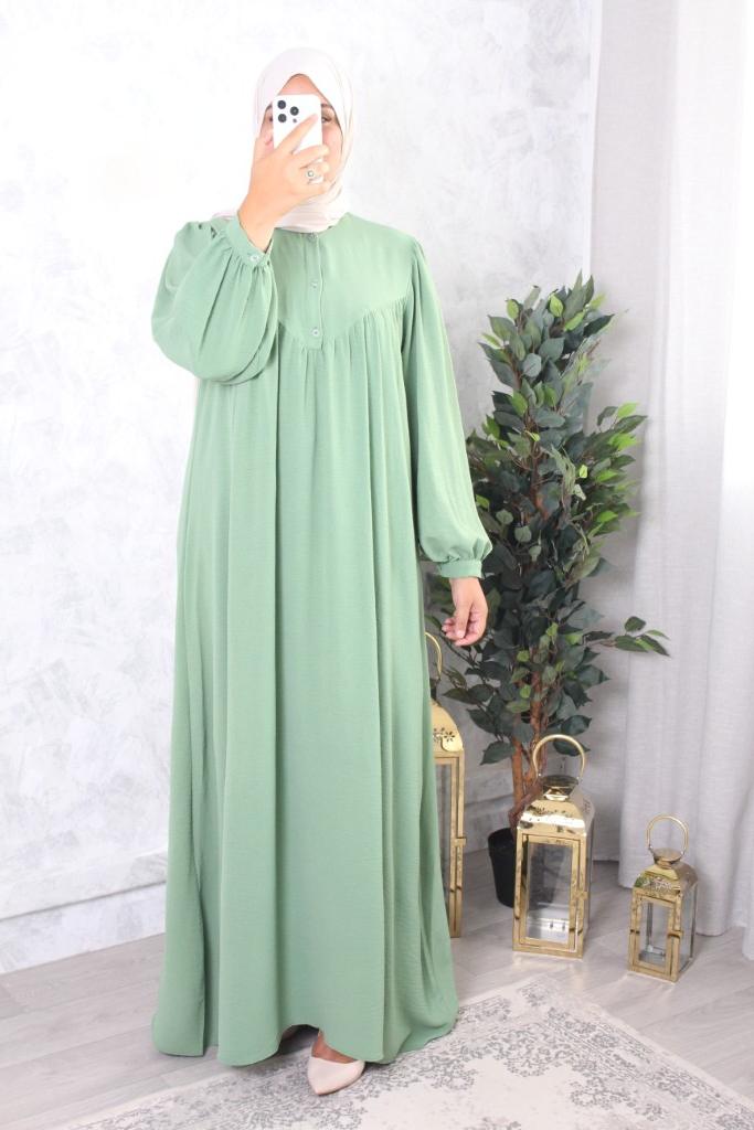Abaya évasée pas cher jazz Tula avec poitrine ouverte avec des boutons, pour femme chic et élégante. Tissu jazz, mat et légèrement plissé, idéal pour le printemps-été. Disponible de la t52/1m55 à t58/1m70.