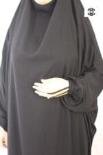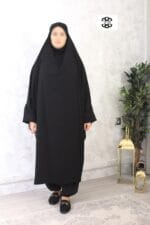 Jilbab sarouel El Bassira Wool Peach 2 pièces pour femme musulmane voilée avec sarouel femme extra large, qui dispose d’un cordon pour resserrer la taille. Disponible en taille 54/1m60 jusqu’à 60/1m75. Tissu Wool Peach microfibre léger idéal pour le printemps été.