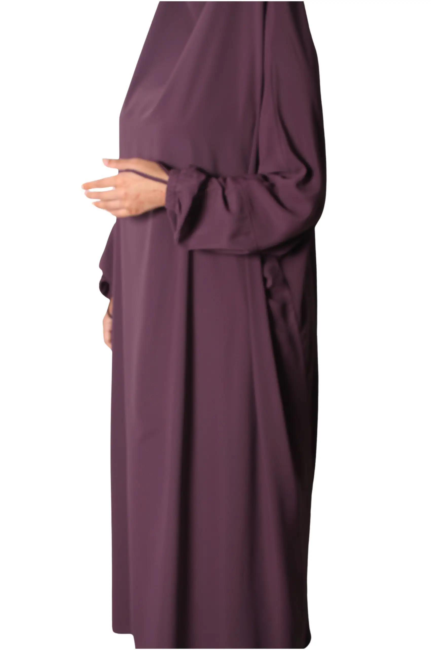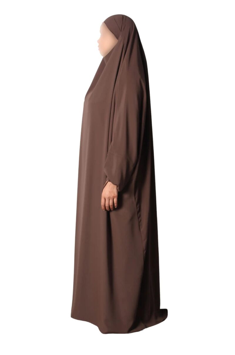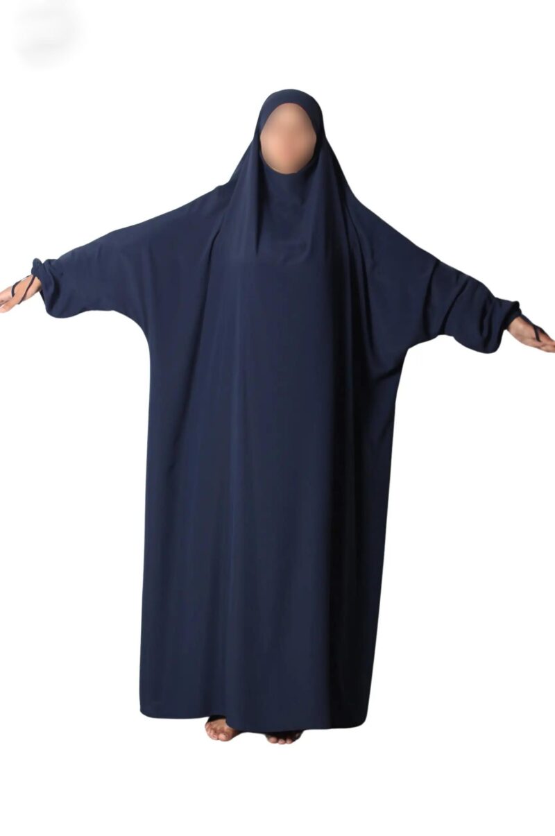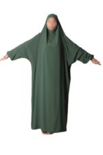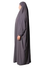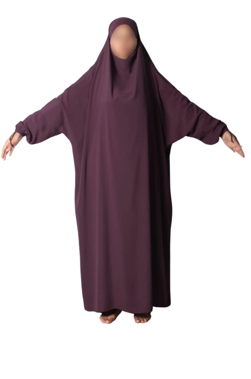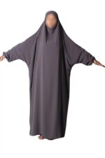Jilbab Soie de Médine 1 pièce El Bassira pour femme musulmane voilée. Disponible en taille t52/1m55 jusqu’à t64/1m85. Tissu Soie de Médine SPH, très léger et doux, légèrement satiné et super fluide, idéal pour les occasions et les périodes de fortes chaleurs.