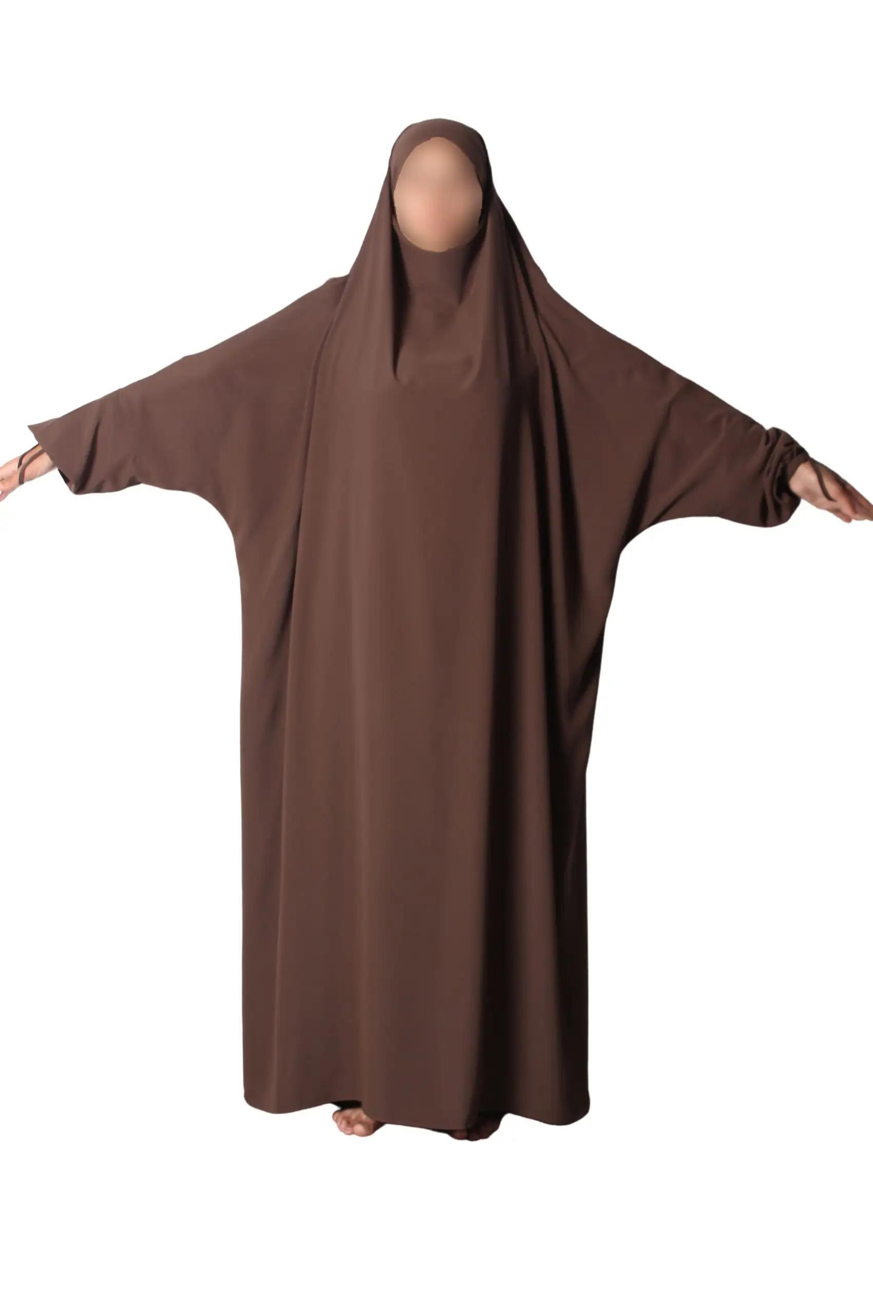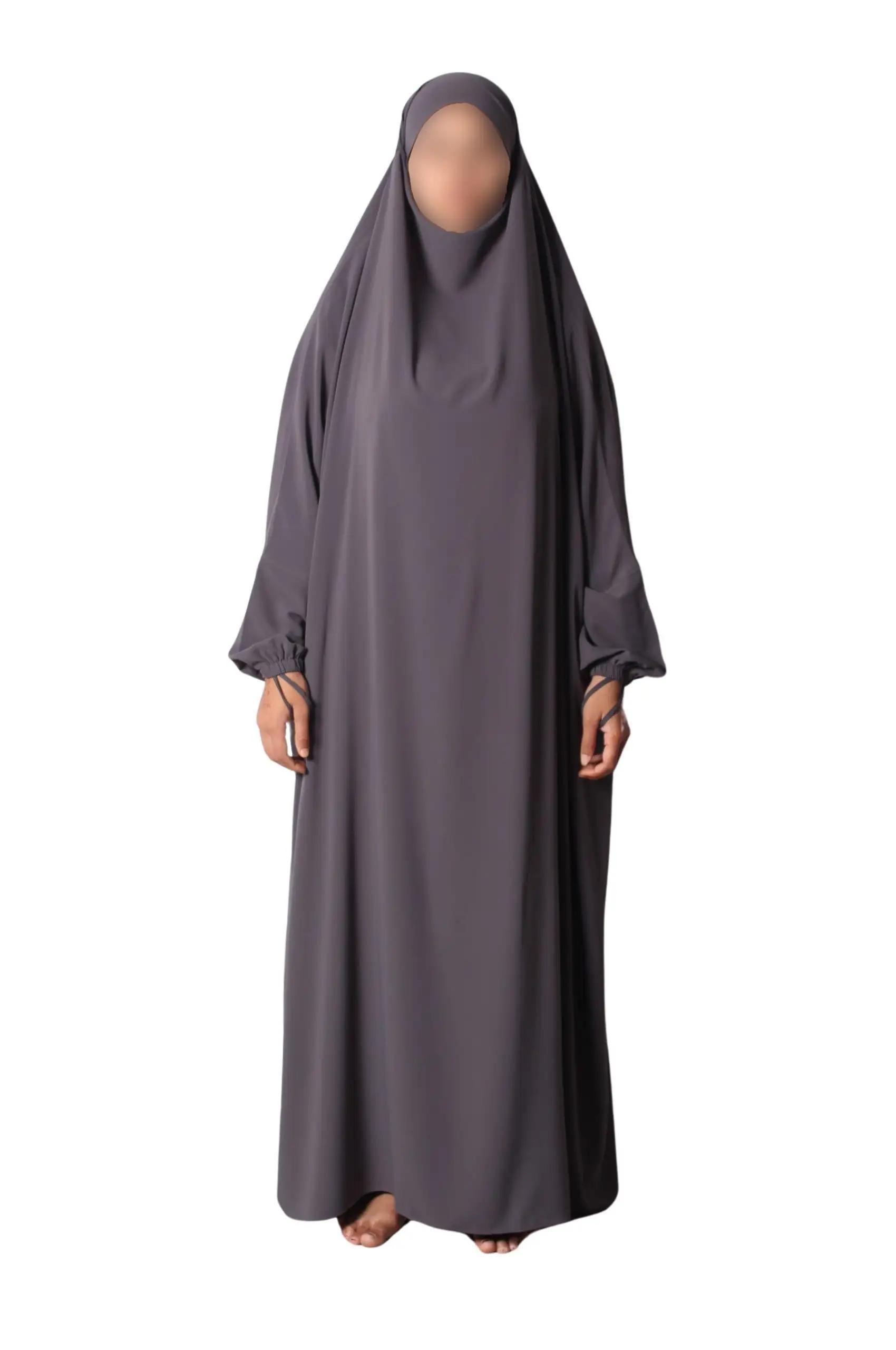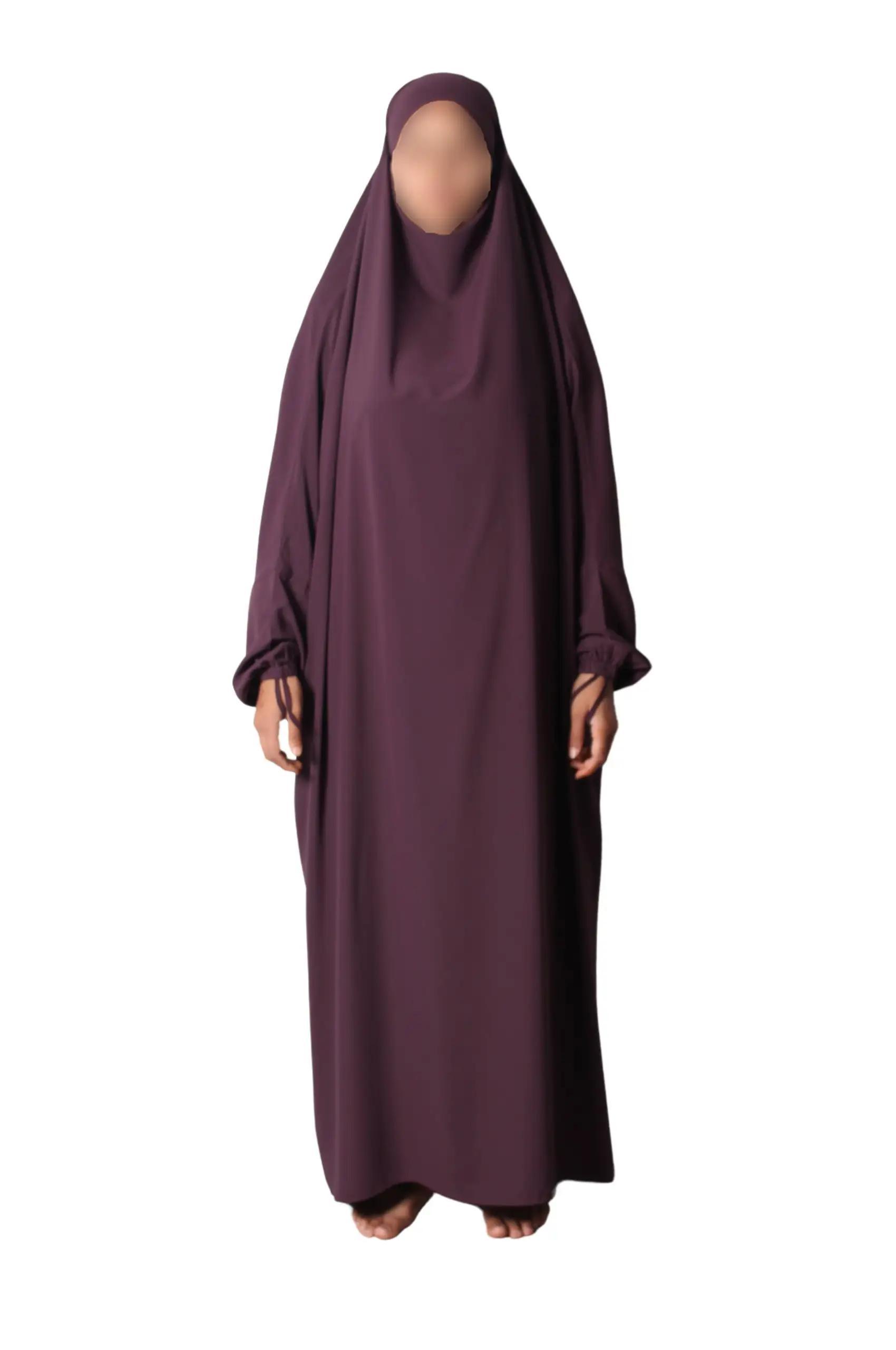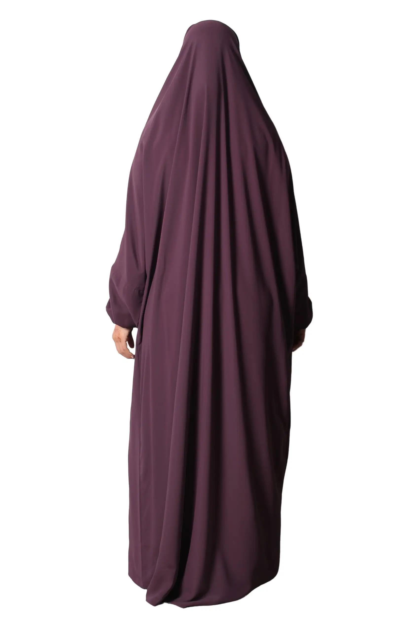 Jilbab Soie de Médine 1 pièce El Bassira pour femme musulmane voilée. Disponible en taille t52/1m55 jusqu’à t64/1m85. Tissu Soie de Médine SPH, très léger et doux, légèrement satiné et super fluide, idéal pour les occasions et les périodes de fortes chaleurs.