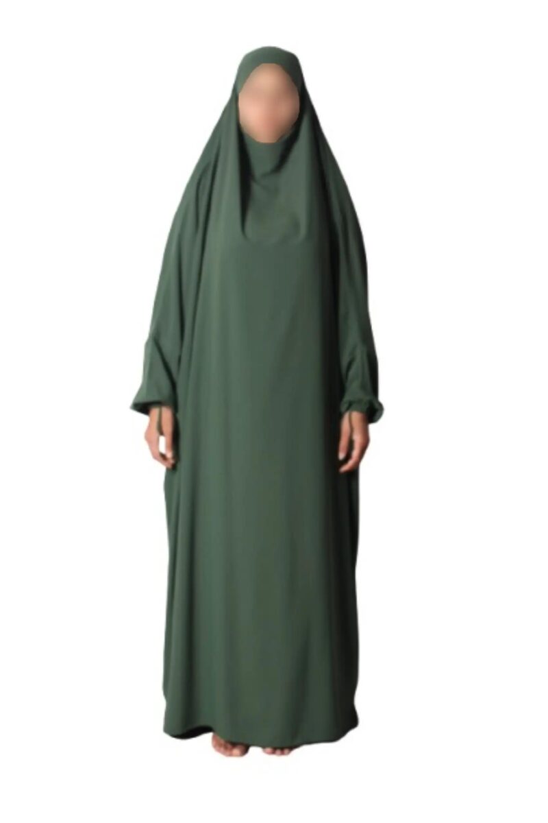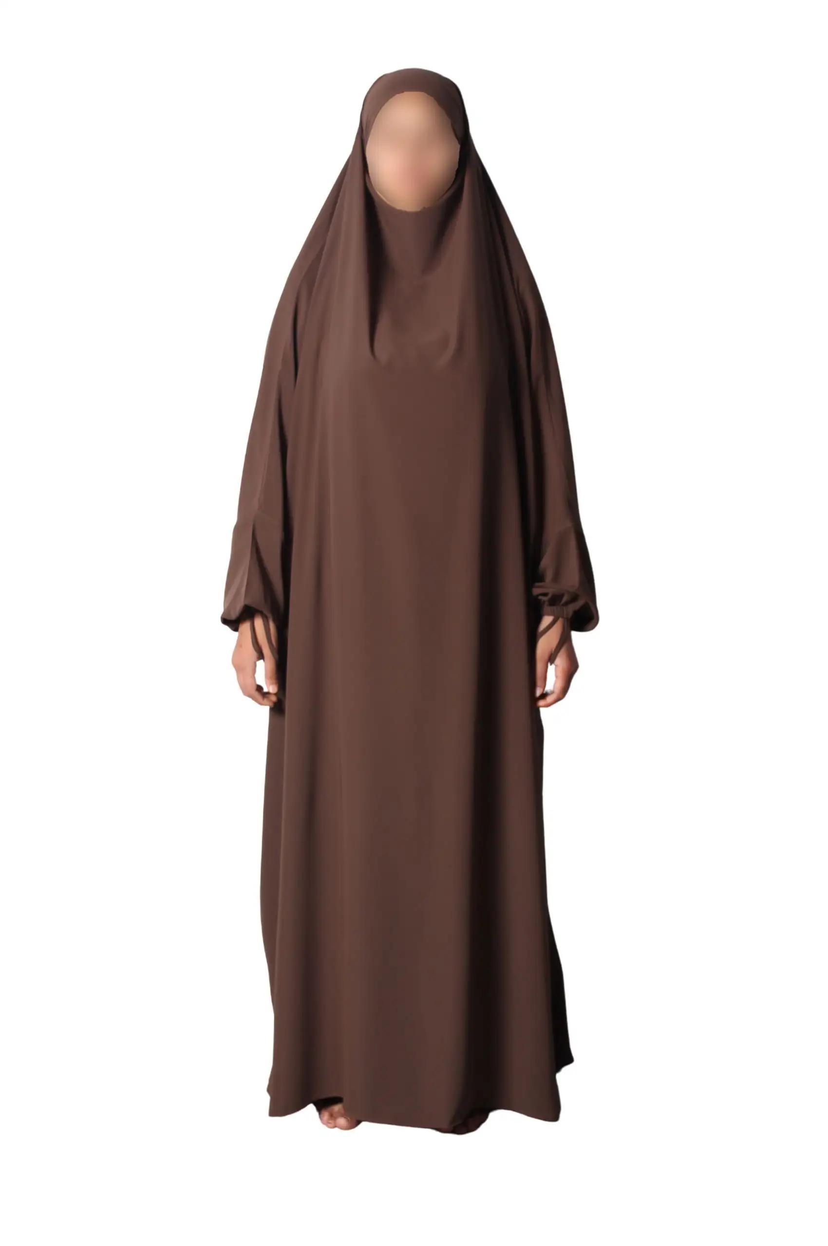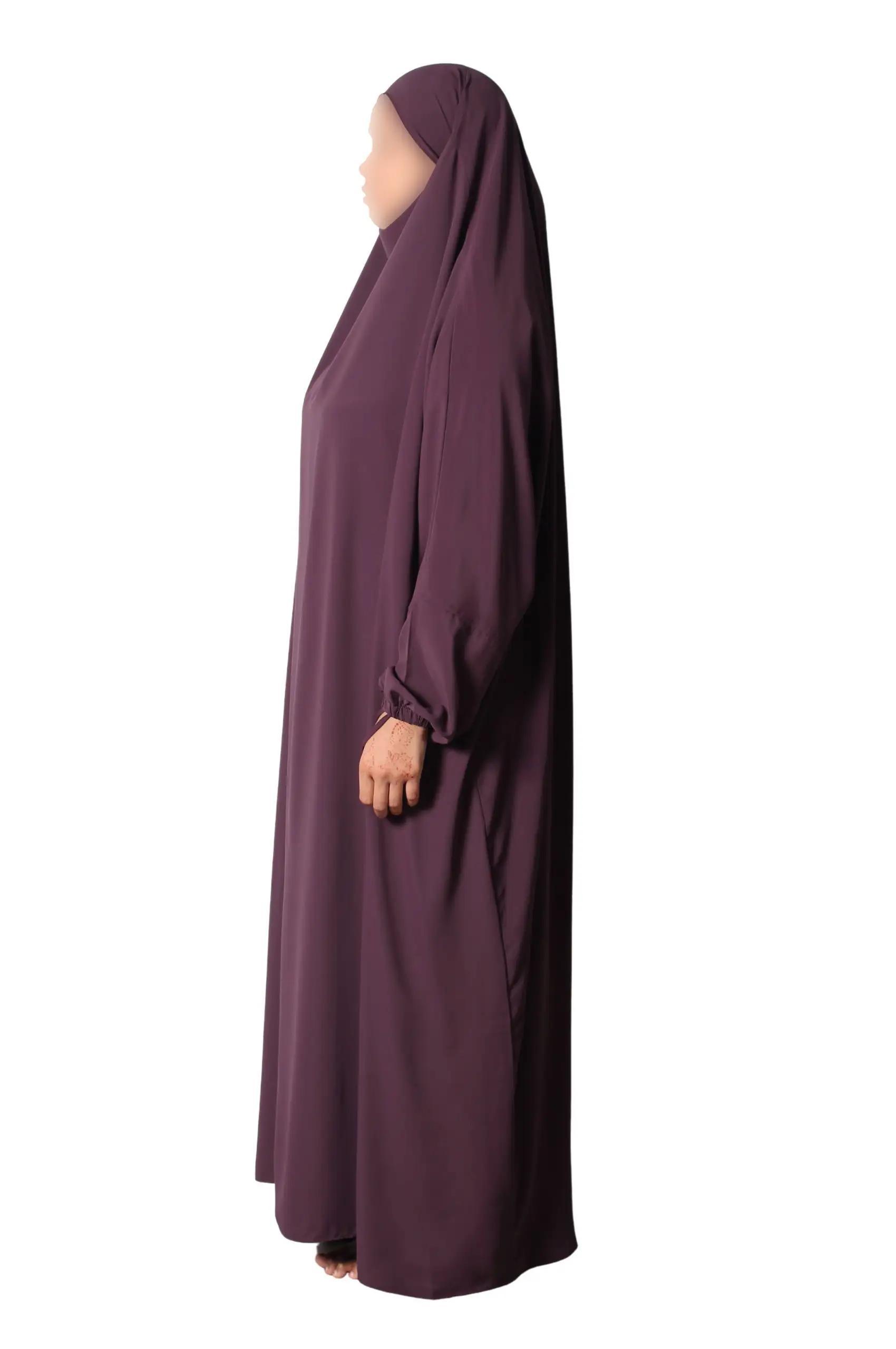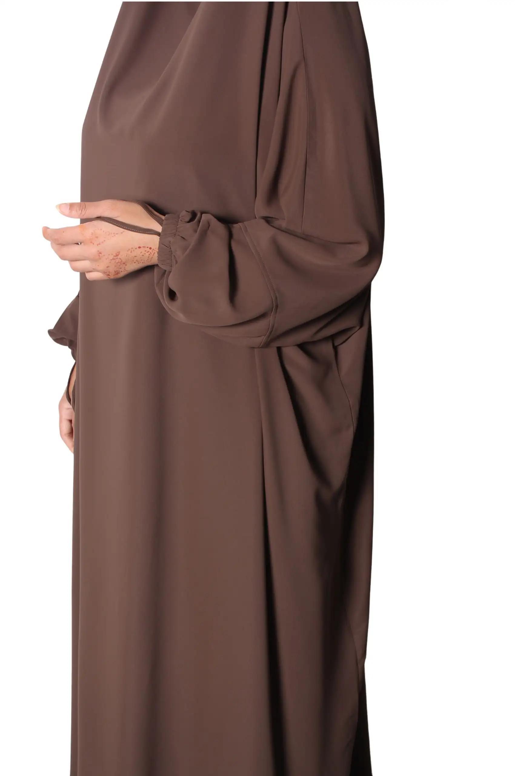 Jilbab Soie de Médine 1 pièce El Bassira pour femme musulmane voilée. Disponible en taille t52/1m55 jusqu’à t64/1m85. Tissu Soie de Médine SPH, très léger et doux, légèrement satiné et super fluide, idéal pour les occasions et les périodes de fortes chaleurs.