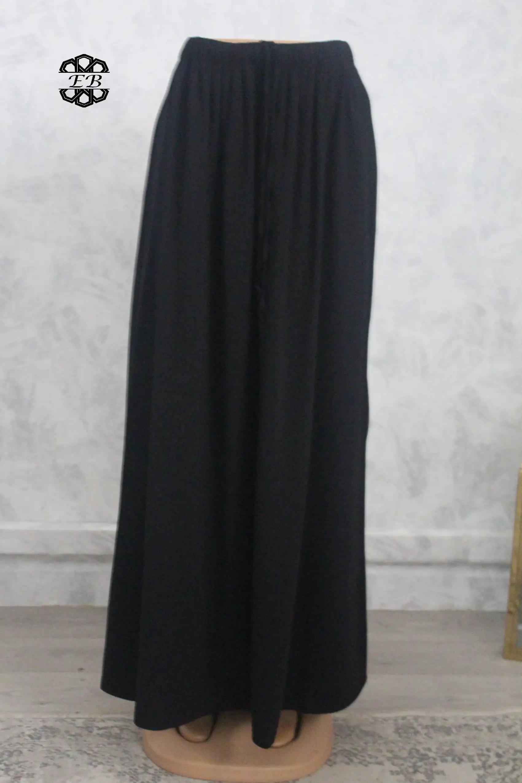 Jupe longue noir intense évasée Wool Peach El Bassira pour femme musulmane voilée. Disponible en taille t1/1m55-1m62 jusqu’à t4/1m75-1m83. Tissu Wool Peach microfibre léger, mat, doux et très léger. Idéal pour le printemps-été.