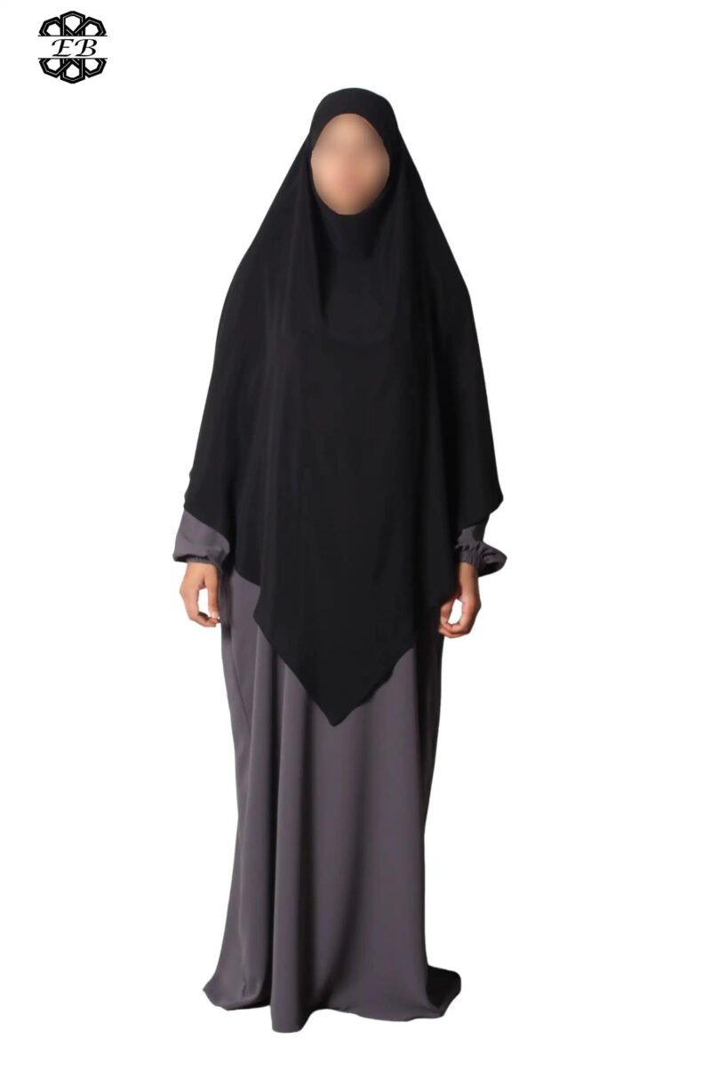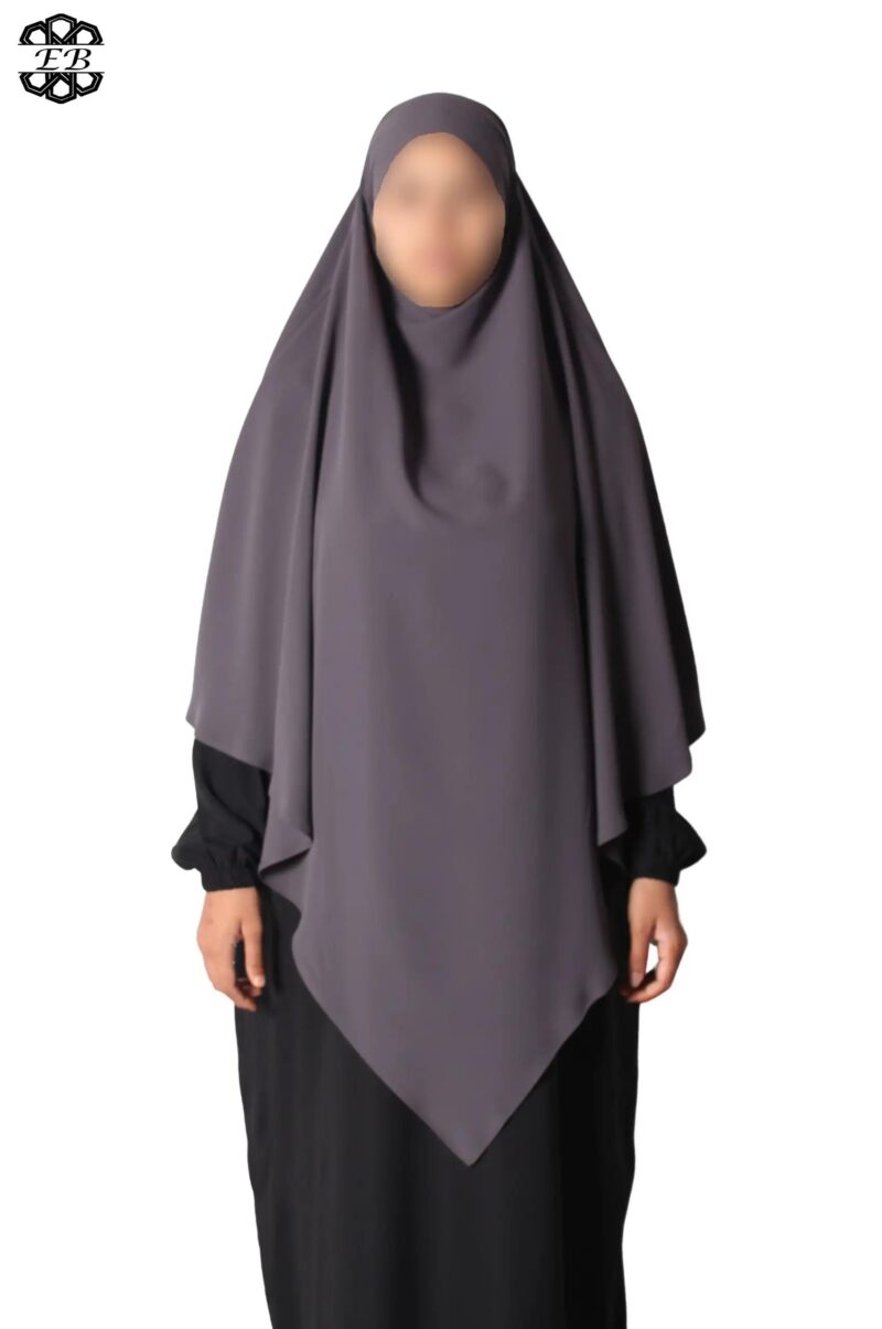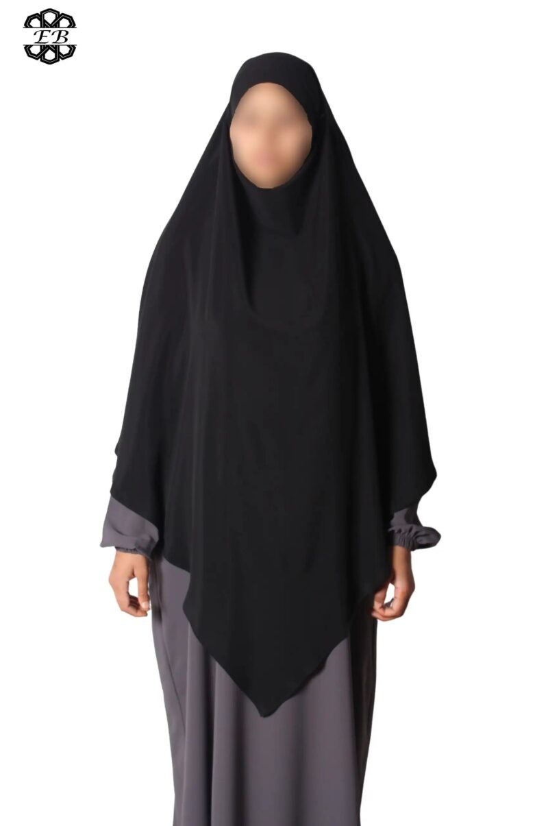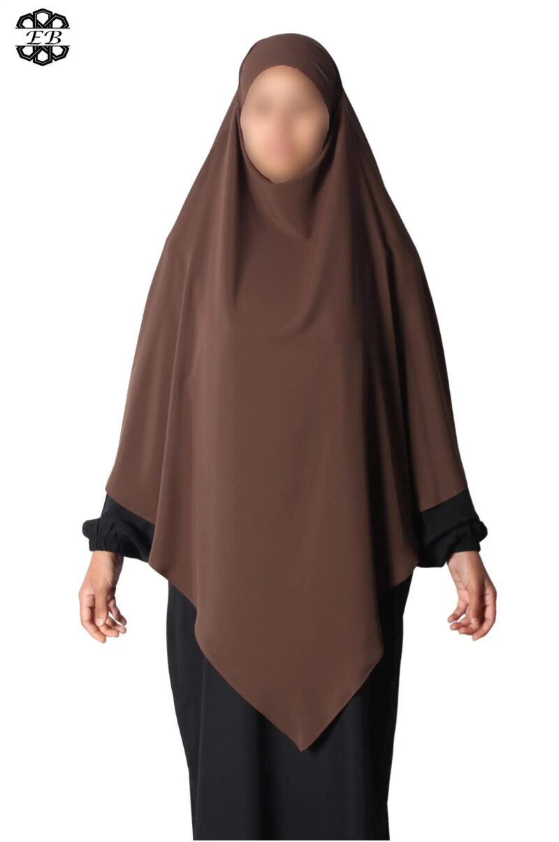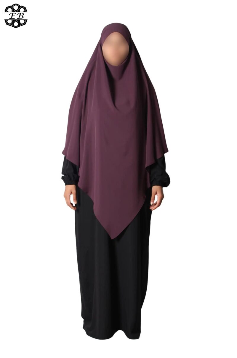 Khimar long Soie de Médine pointu El Bassira pour femme musulmane voilée. Tissu Soie de Médine, très léger et fluide, avec un léger effet satiné. Idéal pour les occasions et le printemps-été.