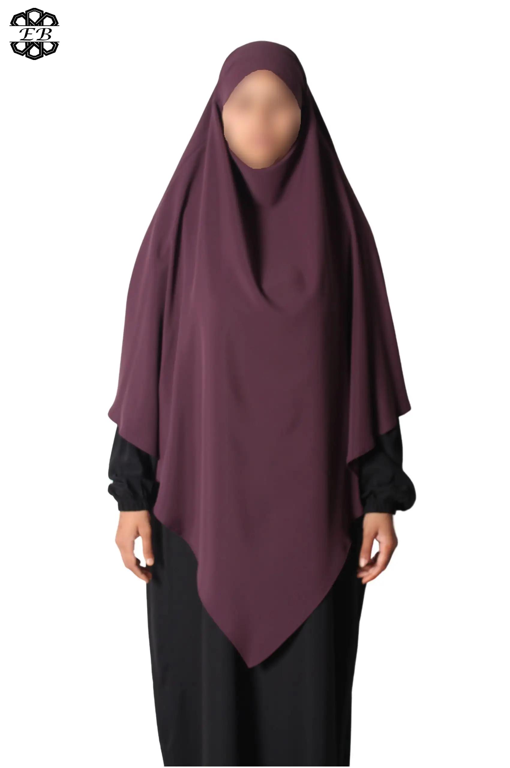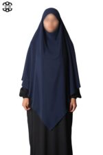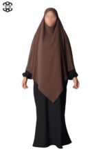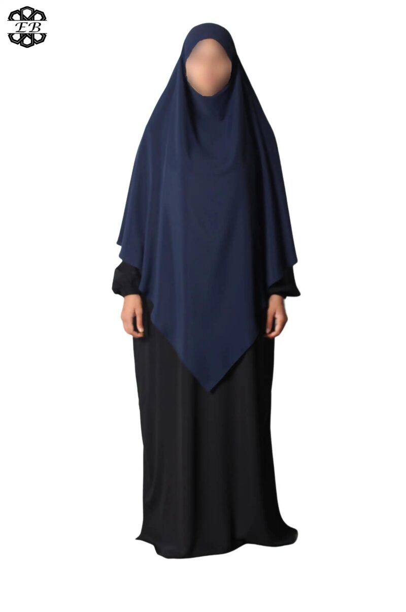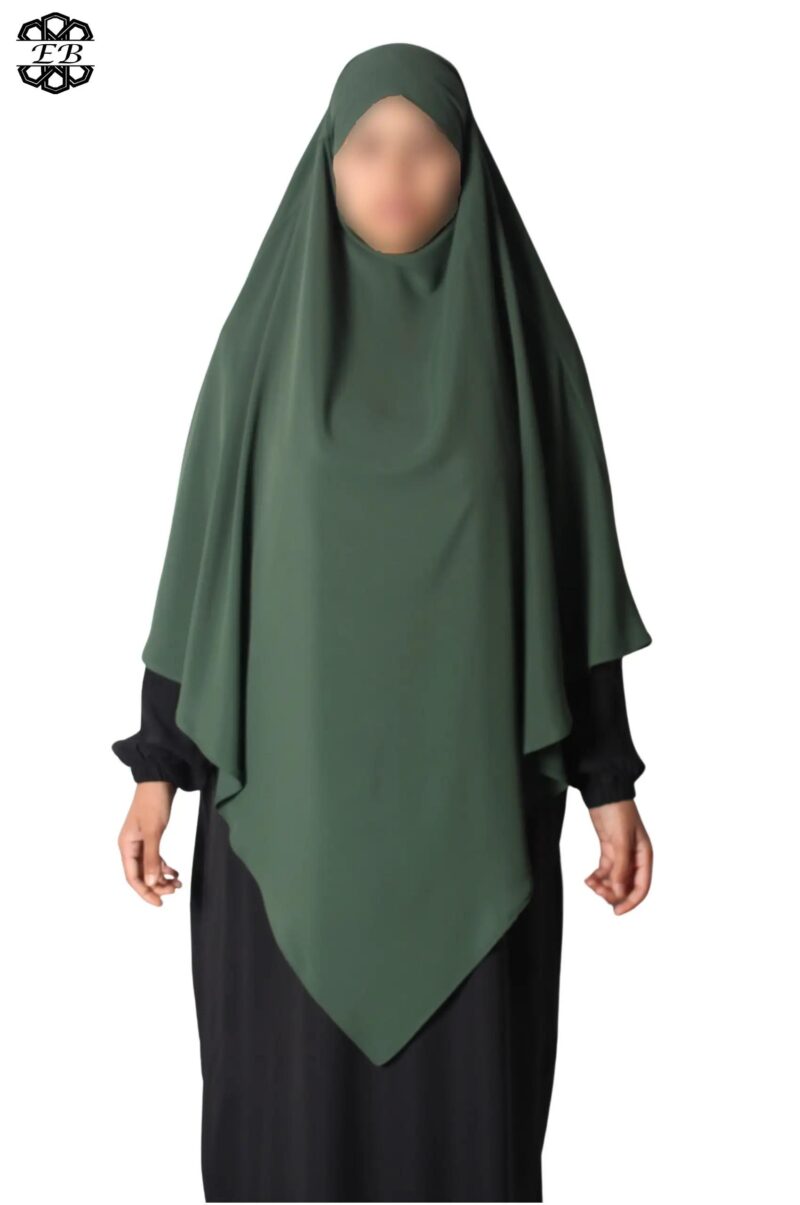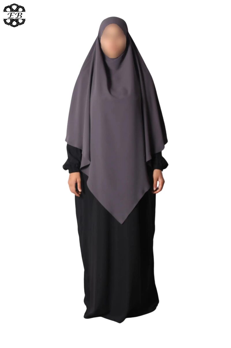 Khimar long Soie de Médine pointu El Bassira pour femme musulmane voilée. Tissu Soie de Médine, très léger et fluide, avec un léger effet satiné. Idéal pour les occasions et le printemps-été.