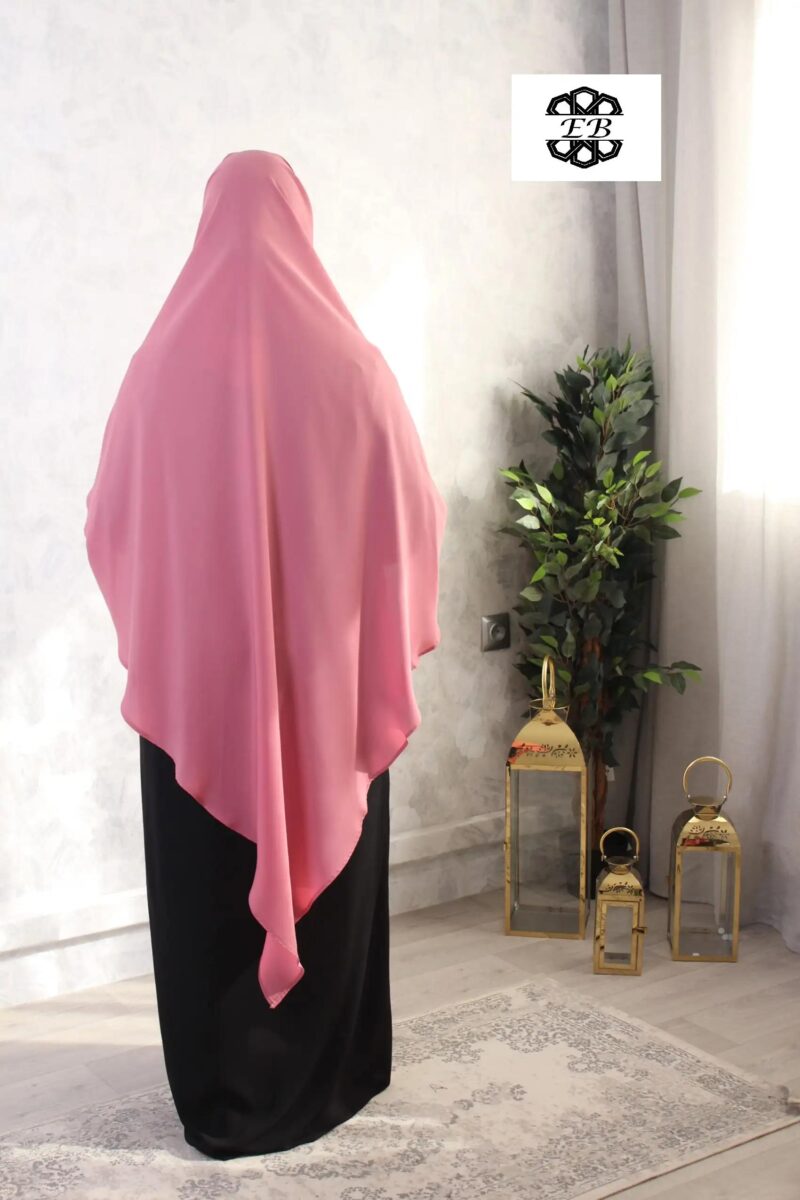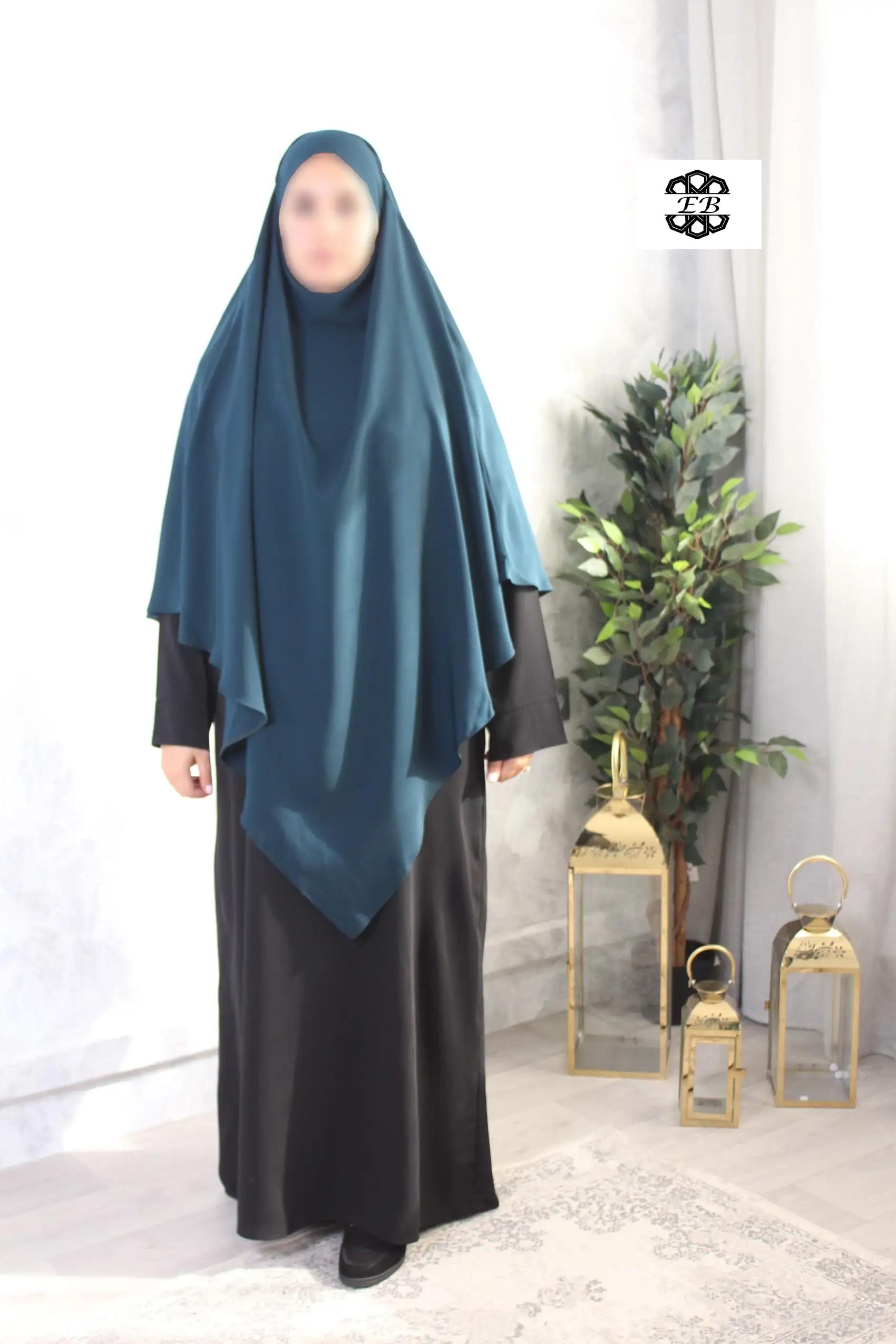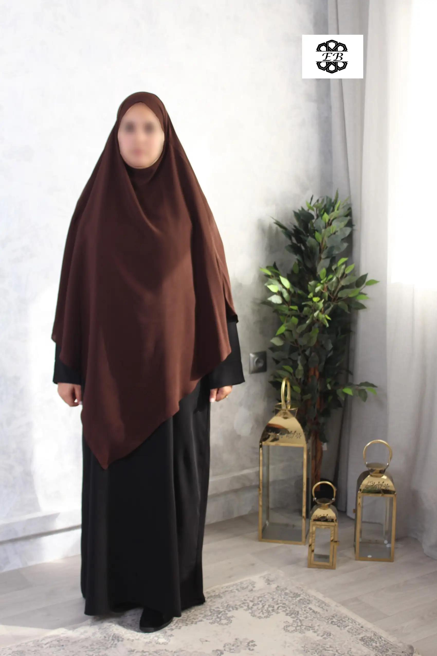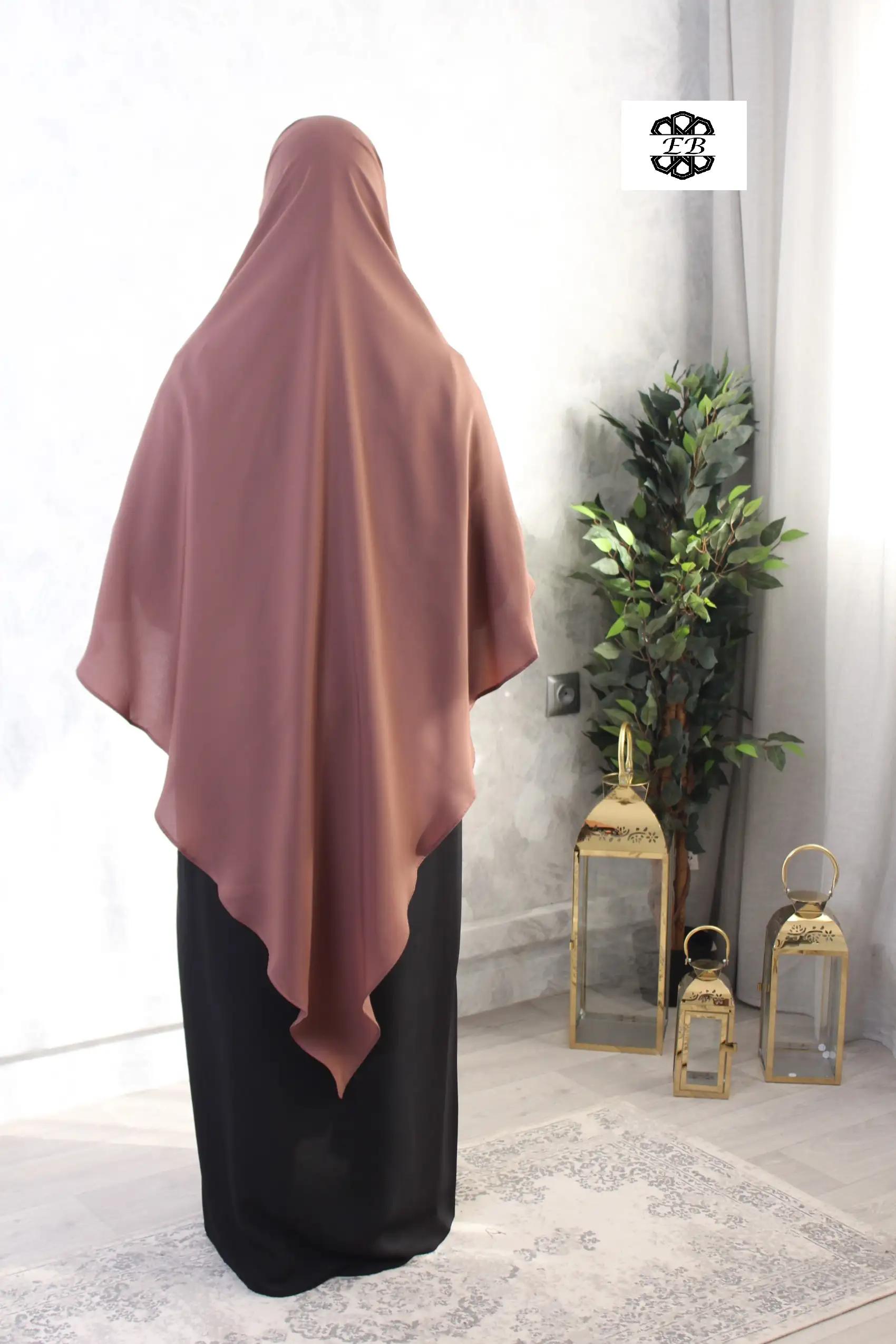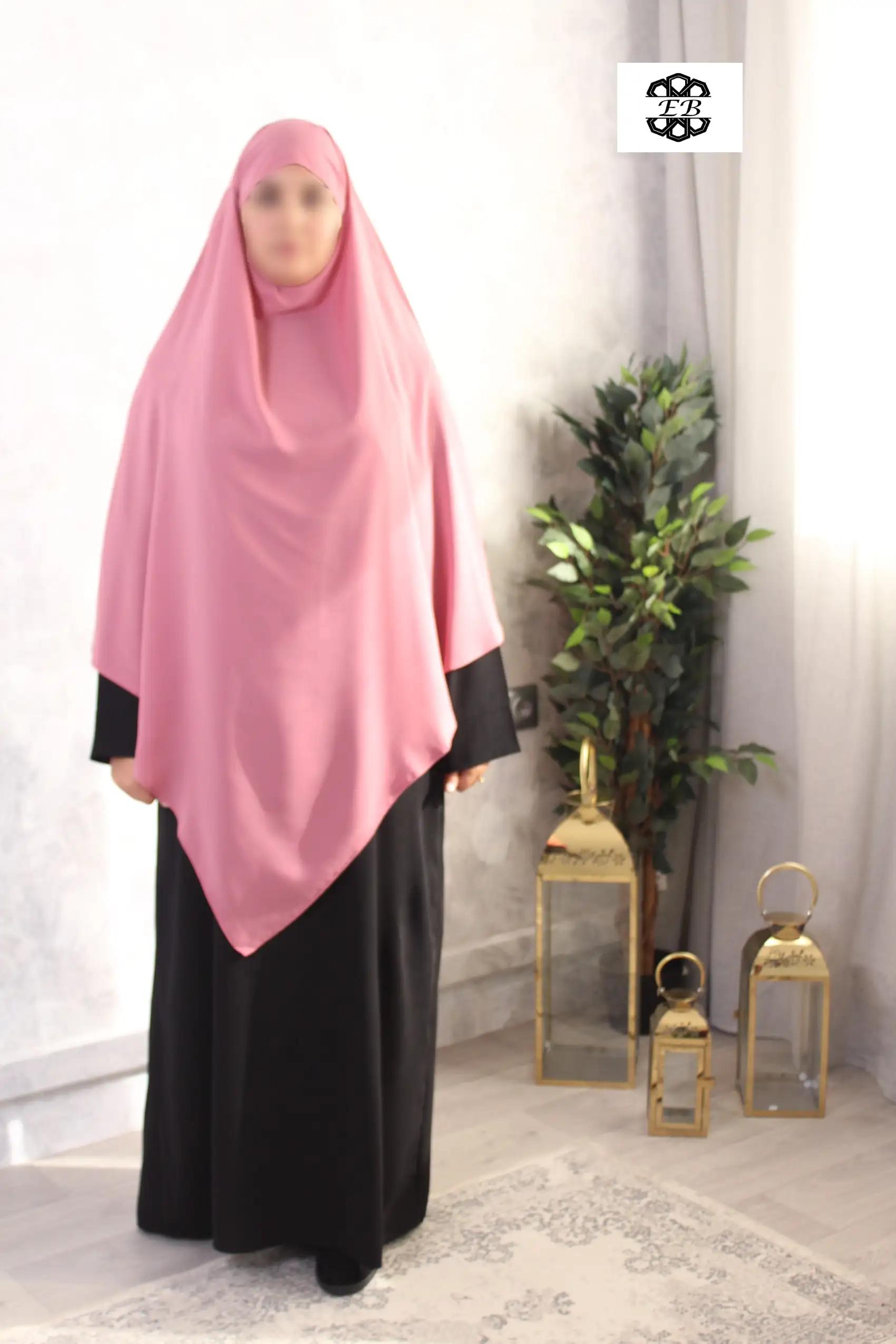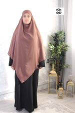 Khimar long wool peach pointu El Bassira pour femme musulmane voilée. Tissu Wool Peach Microfibre léger, mat et doux. Idéal pour toutes saisons.