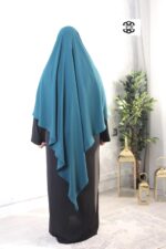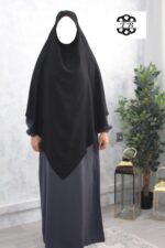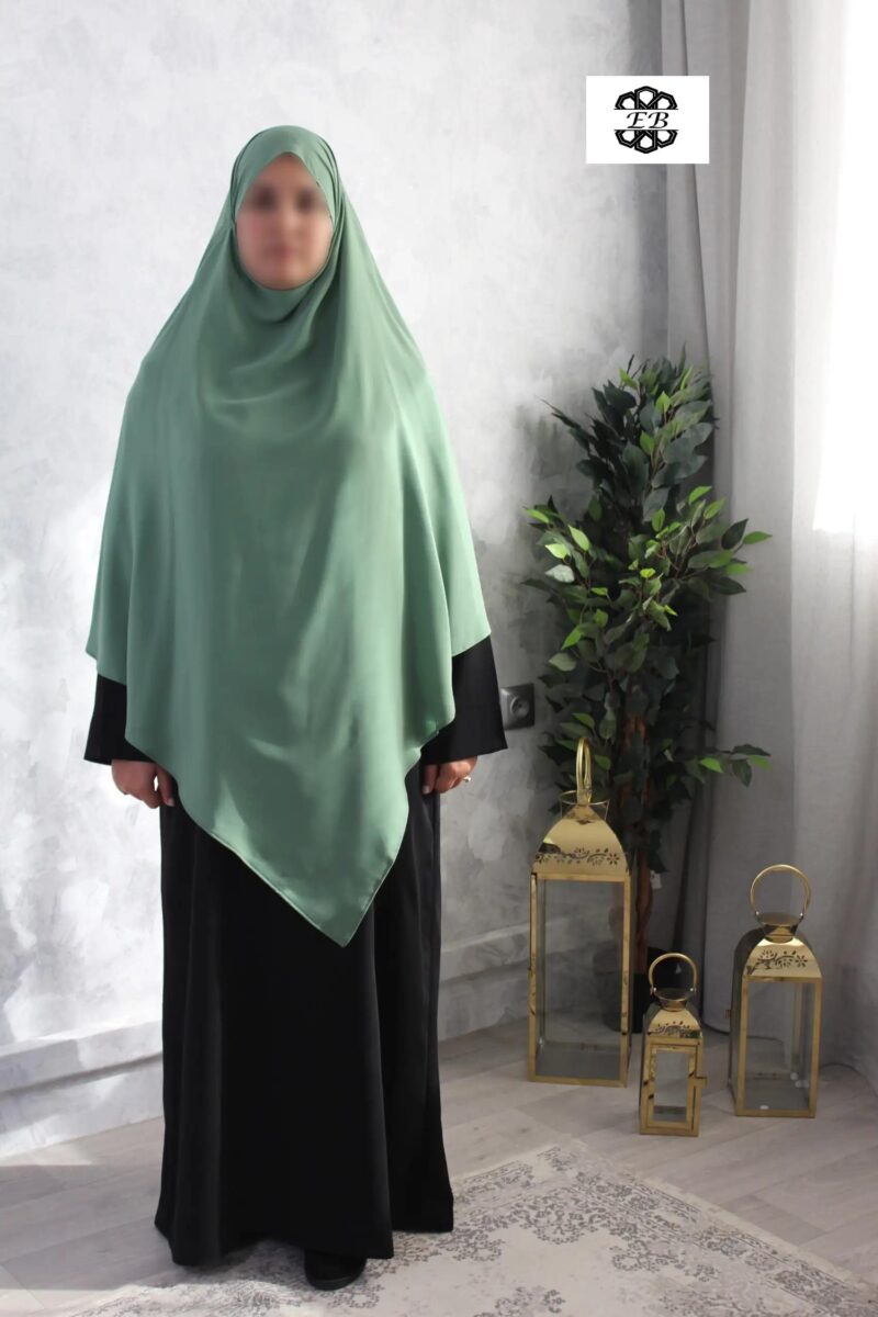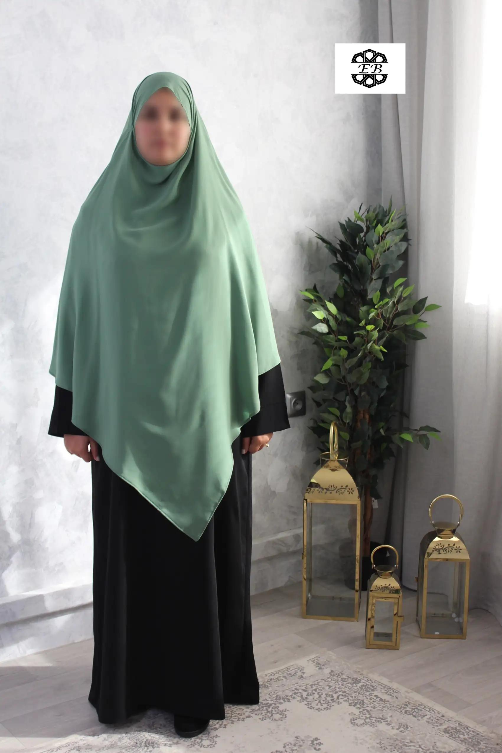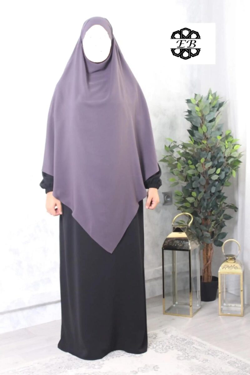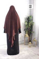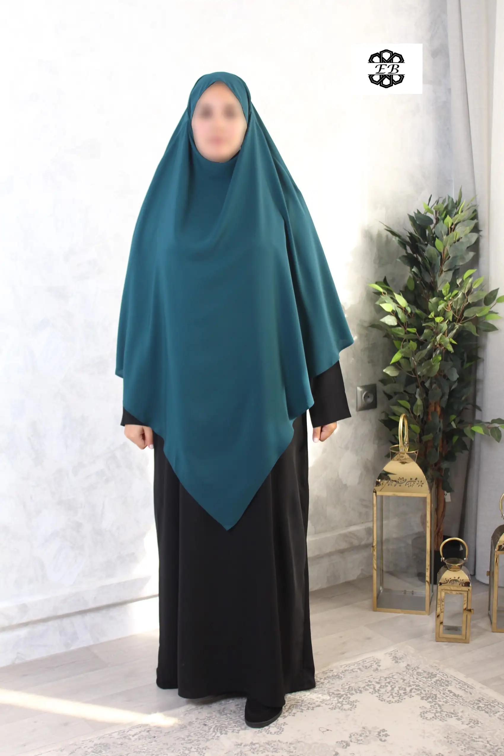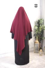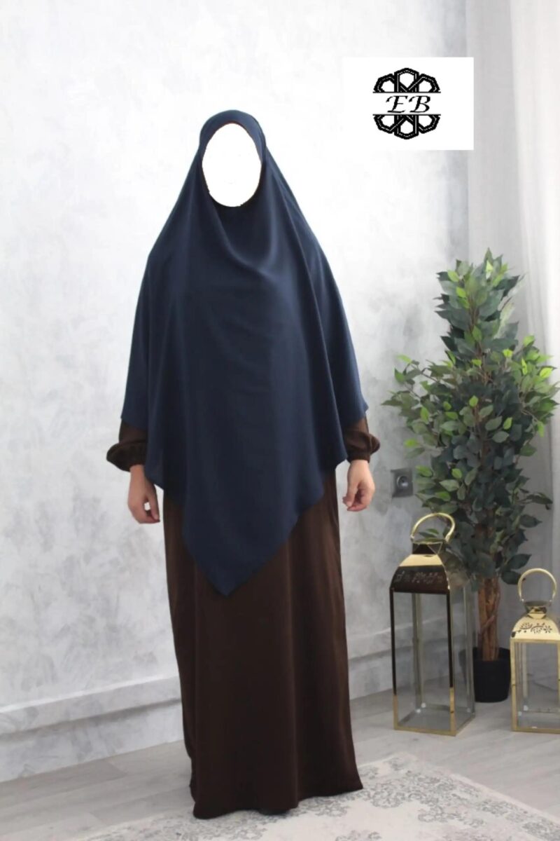 Khimar long wool peach pointu El Bassira pour femme musulmane voilée. Tissu Wool Peach Microfibre léger, mat et doux. Idéal pour toutes saisons.