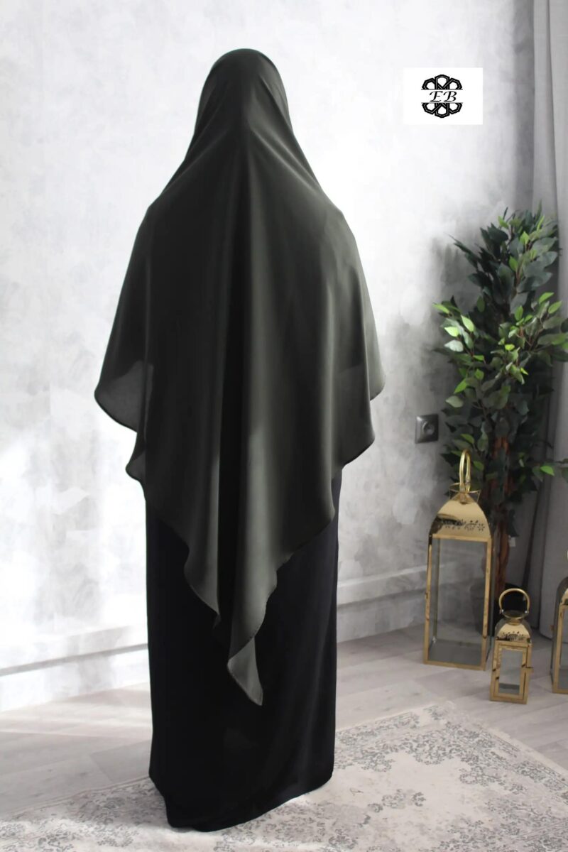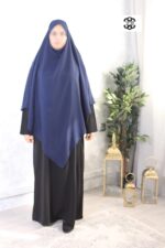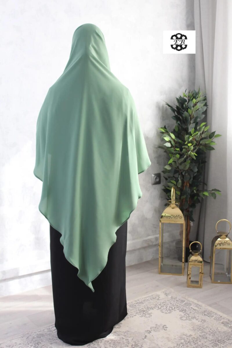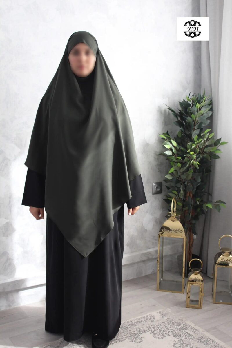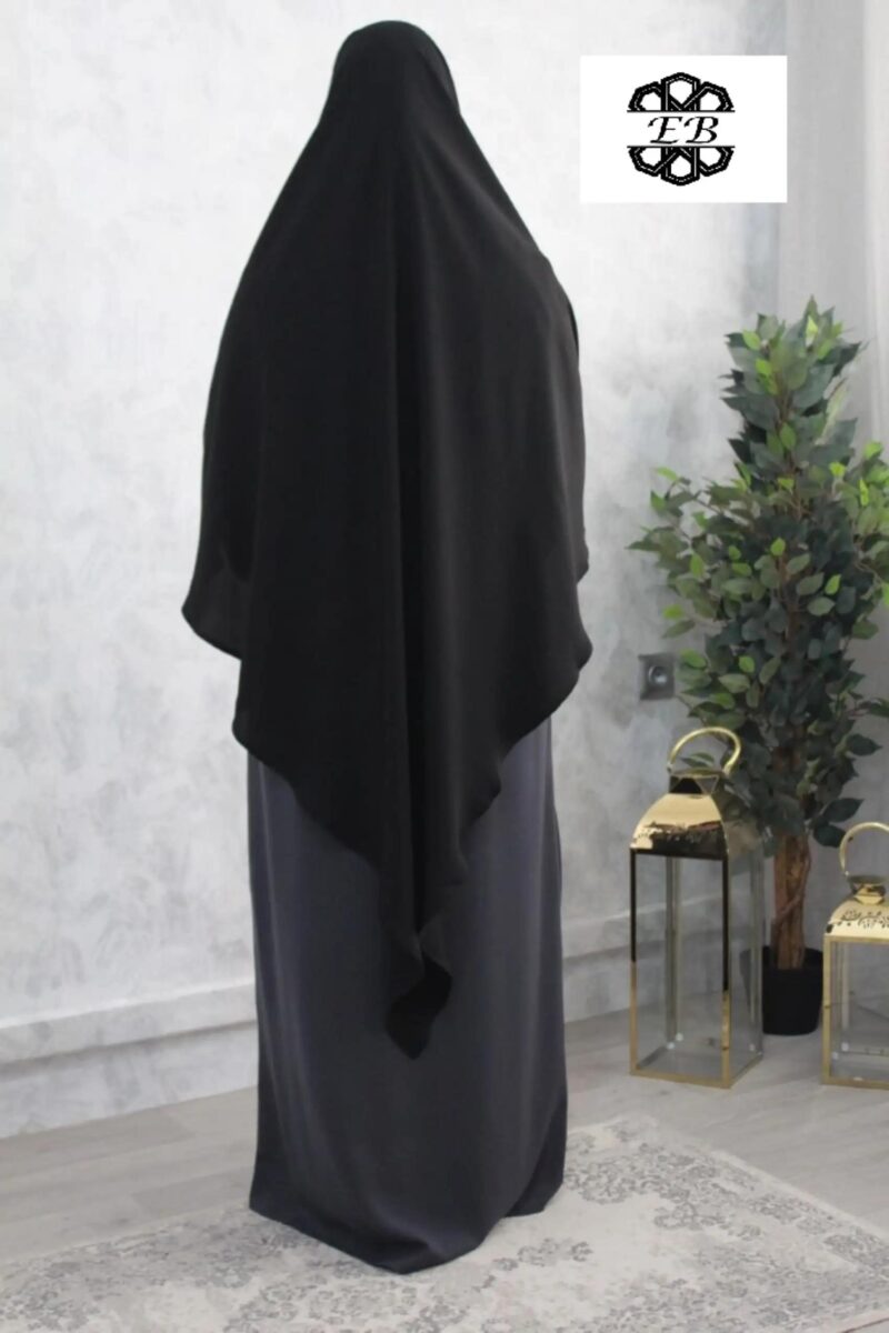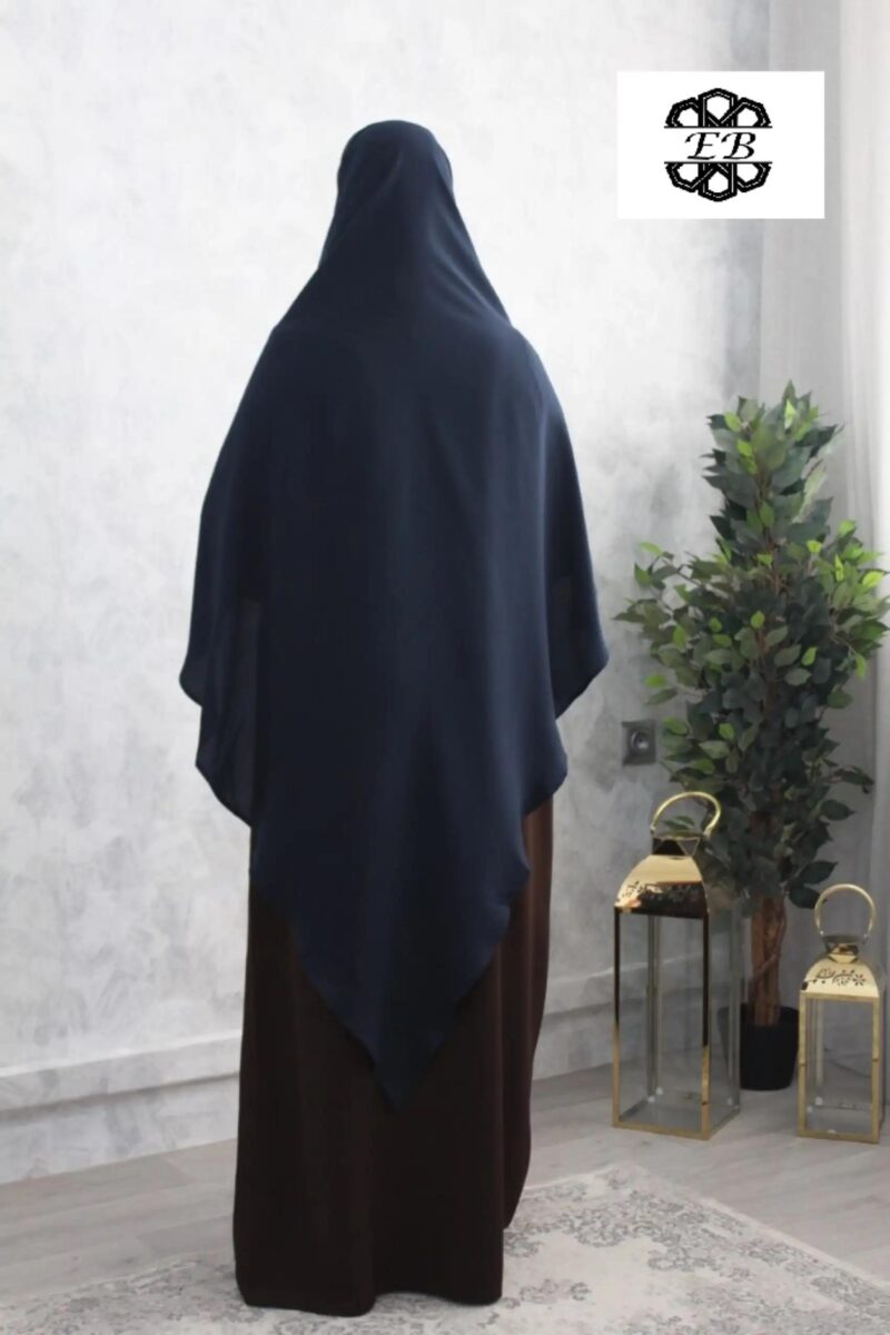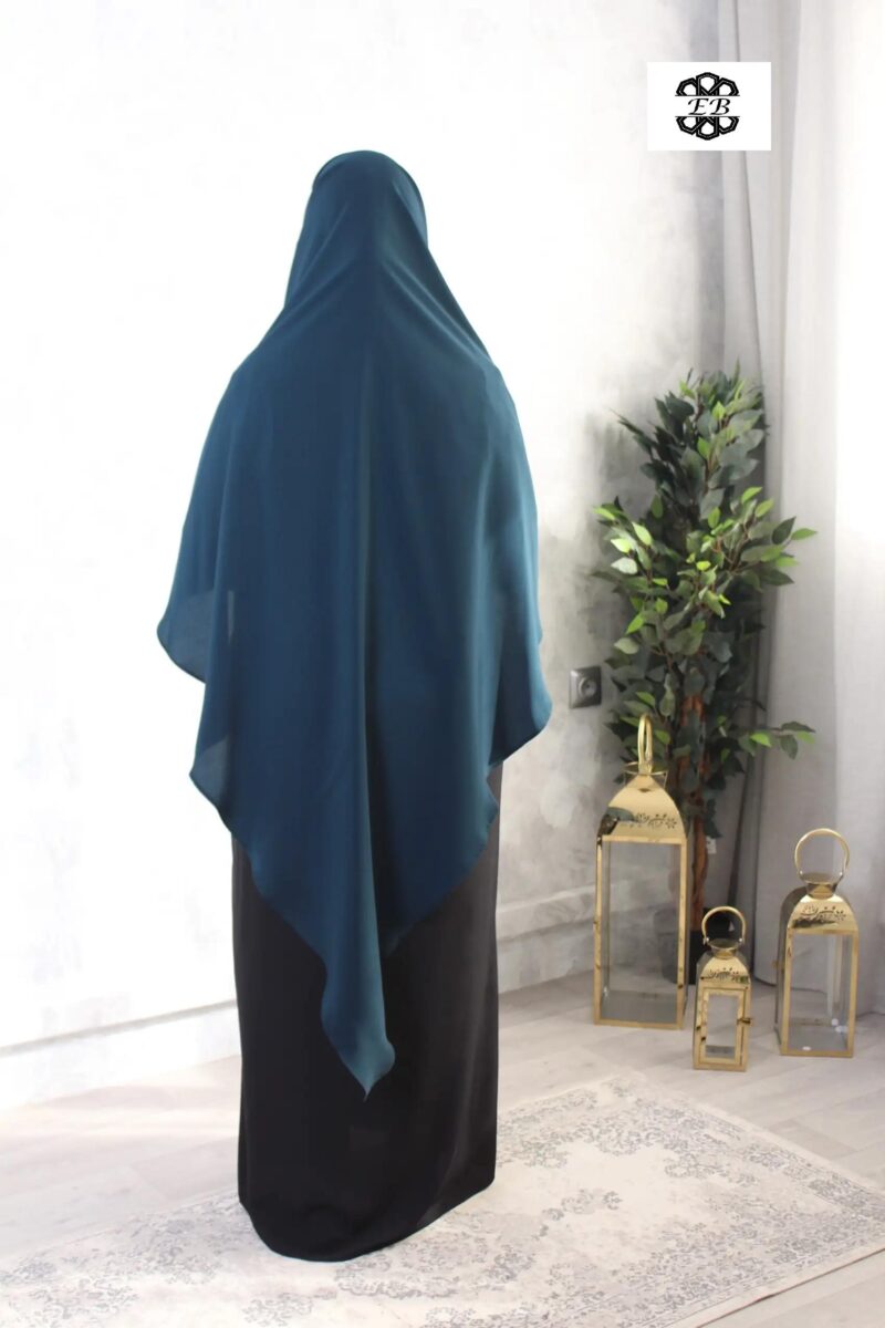 Khimar long wool peach pointu El Bassira pour femme musulmane voilée. Tissu Wool Peach Microfibre léger, mat et doux. Idéal pour toutes saisons.